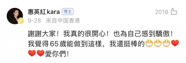 ▲惠英红:"我还挺棒的" / 图源:微博