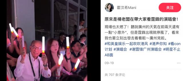 谢霆锋巡演期间,老板带着整个公司去捧场,上演"一家人就是要整整齐齐"。
