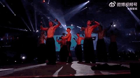 舞台活脱脱搞成了猛男秀,裸半身吊单杠,秀腹肌钢管舞,拼命的架势连隔壁韩团看了都得敬佩三分。