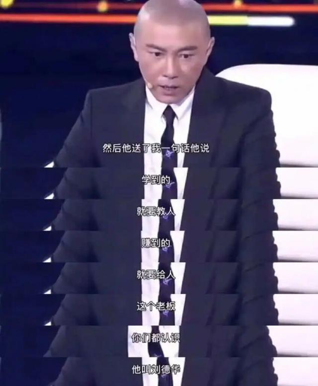 他亲口回忆,自己只说了一句:"老板,我快破产了。"刘德华听完,当即开了一张巨额支票帮他还清债务,并送他一句受用终身的话:学到就要教人,赚到就要给人。