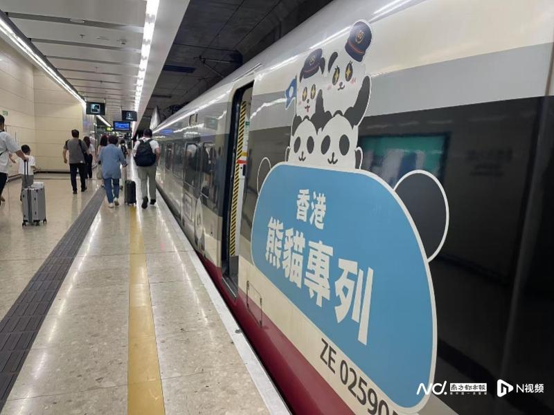 旅客乘搭大熊猫主题高铁列车游玩香港。