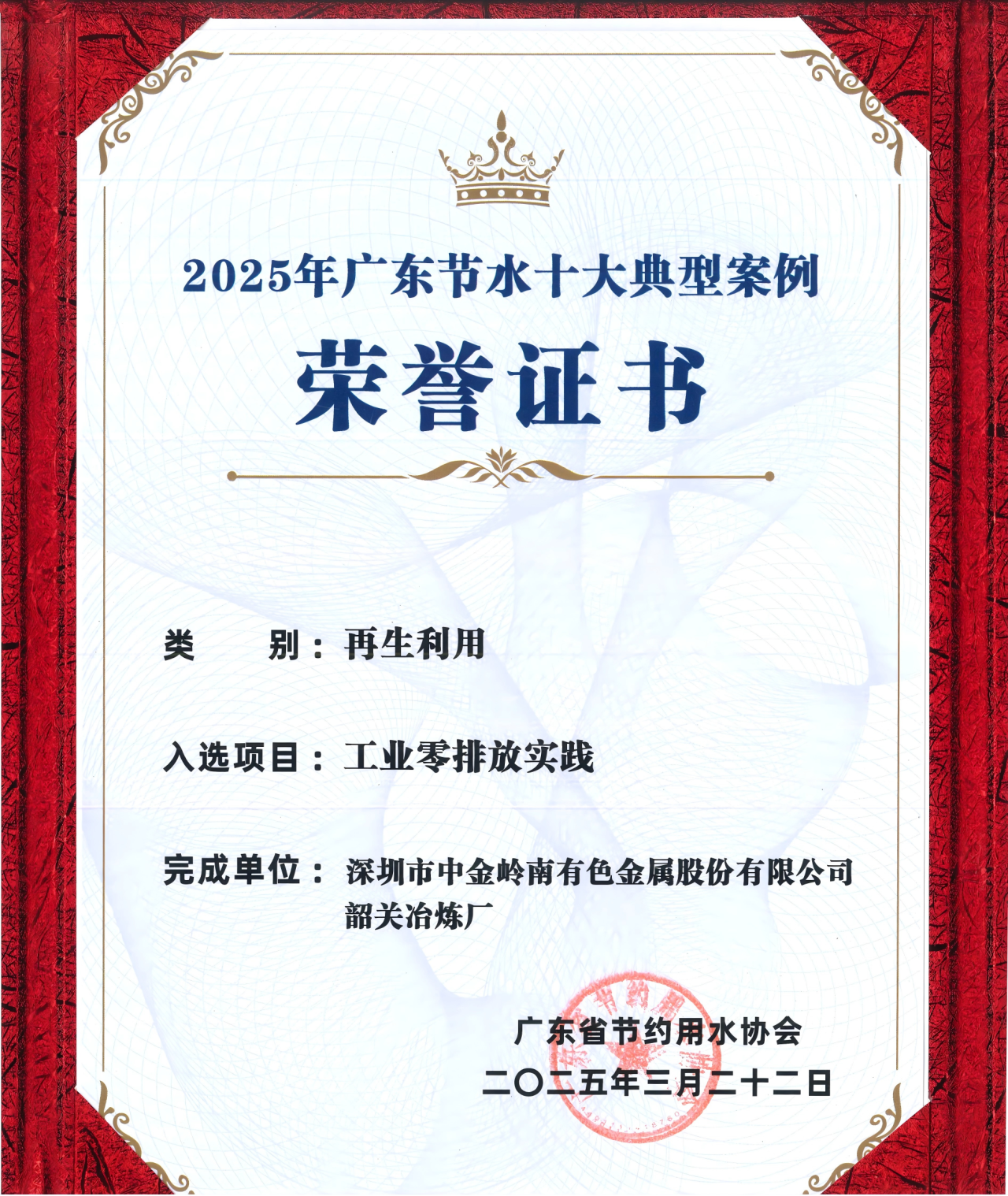 ▲韶关冶炼厂“工业废水零排放”项目入选2025年广东节水十大典型案例
